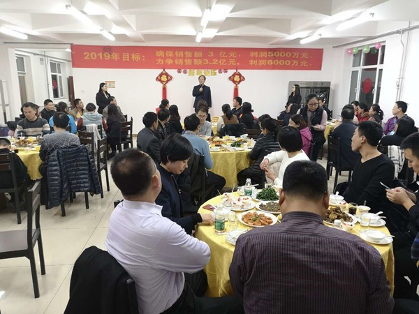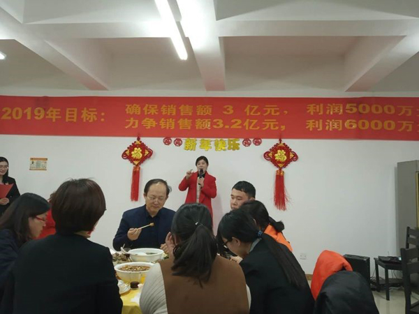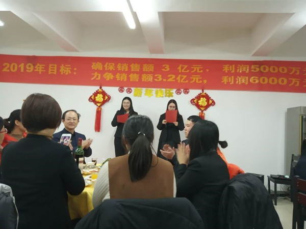 活動第一項:Boss致辭! 董事長首先給大家拜年鞠躬,感謝大家一年來的付出。回顧2018年的艱難與艱辛,社會經濟形勢疲軟,公司雖然緊張但已經是同地區(qū)過的最好的大公司,感謝大家這一年對公司的信任與支持,同時也肯定了2018年是公司業(yè)績最優(yōu),技術突破最多,成績最好的一年。 展望2019年,國家政策重大利好,公司度過了最艱難的時期,資本支持足,公司將進入高速發(fā)展階段。要求利潤由兩千多萬要邁向五千多萬,并挑戰(zhàn)六千萬目標?磥硇』锇閭円獢]起袖子加油干啦。。 董事長強調公司由新三板改創(chuàng)業(yè)板或科創(chuàng)板,公司產品屬于高精尖,國家重點支持的產業(yè),是幾代人干不完的事業(yè)。大家要對公司有信心,而且爆料董事長將給予一部分老員工與干部低價購買股份的機會,公司是混合所有制公司,希望大家共同都享受公司的利潤分紅。小伙伴們,賺錢的機會要來了。不知道誰會有這樣的榮譽呢,總之大家好好干,衷心的把事業(yè)做好總會有回報的。 接下來董事長重點強調了對所有參加的員工提出了工作要求,大家要注意了,接下來各部門開會可要好好分析工作如何開展,如何達到董事長的要求: 1 行政管理將是2019年重要的工作,彌補公司行政管理的短板,各部門要共同加強職能部門管理意識,建立流程化思維,服務好生產與銷售。 2 要積極開展批評與自我批評工作,用好國家領導人都在用的管理工具。使全員工作的同時,有批評有獎勵有評價有意義。吾日三省吾身! 3 提出電子商務部要加強設計思維,多開發(fā)高端日用品,不走量的路線,讓我們用的茶杯酒杯都是我們自己的中硼產品,把中硼這一優(yōu)勢材料推廣出去。 考核部提醒大家,接下來的工作大家要好好思考了,各部門會議要強調2019年工作該如何開展了。
