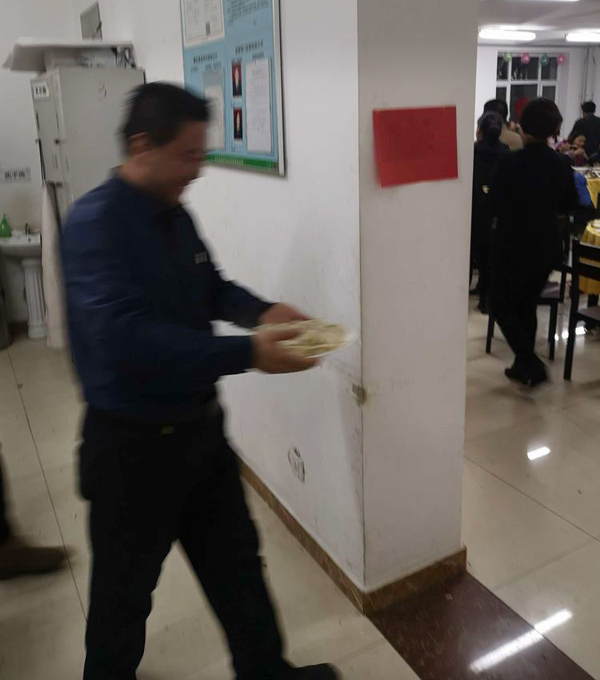 財務李長江總,狀元兒子考上了清華大學,不吃餃子光端餃子,嘴里說只要員工們吃的好,開心,我們心里就滿足了,圖片就可以看出他端餃子使用的是武俠中的絕世武功凌波微步。風一樣的男子