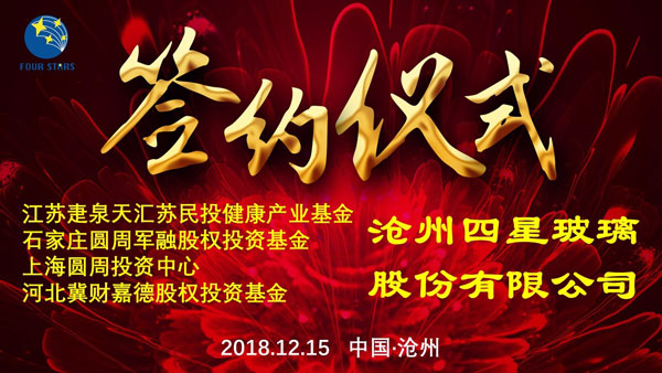 今天是一個(gè)特殊的日子!是我們四星玻璃發(fā)展史上的又一個(gè)新的里程碑,是我們公司成立26年來(lái)的又一次重大事記! 近年來(lái),四星玻璃不斷完善和提升經(jīng)營(yíng)管理質(zhì)量和管理水平,持續(xù)加大國(guó)內(nèi)外市場(chǎng)的開(kāi)拓力度,營(yíng)業(yè)收入逐年增加,利稅貢獻(xiàn)連年上漲,憑借特有的技術(shù)優(yōu)勢(shì)和廣闊的發(fā)展前景獲得了眾多投資者的認(rèn)可和青睞。公司通過(guò)與投資機(jī)構(gòu)進(jìn)行廣泛接觸、深入洽談和細(xì)致調(diào)研,本著合作共贏、互利互惠的原則與四家優(yōu)質(zhì)投資機(jī)構(gòu)達(dá)成一致意見(jiàn),促成了本次簽約。
