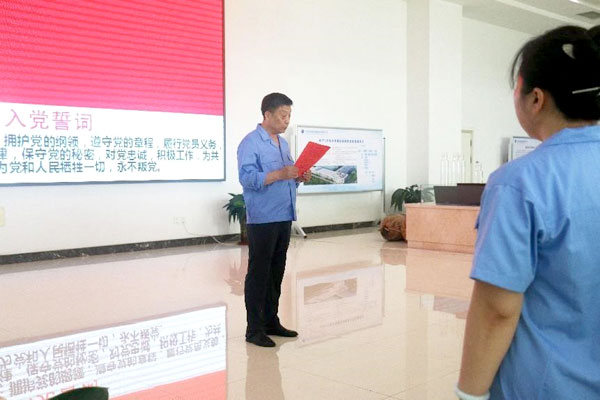 黨支部書記、董事長王煥一,支部副書記、行政副總李蘭舟, 公司顧問王建民,副總經(jīng)理范俊英,副總經(jīng)理王錦松,公司總工程師王希偉,公司顧問段玉新等黨員領(lǐng)導(dǎo)干部,公司全體黨員、部分提出入黨申請(qǐng)的積極分子等110人參加或列席活動(dòng)。李蘭舟主持儀式。