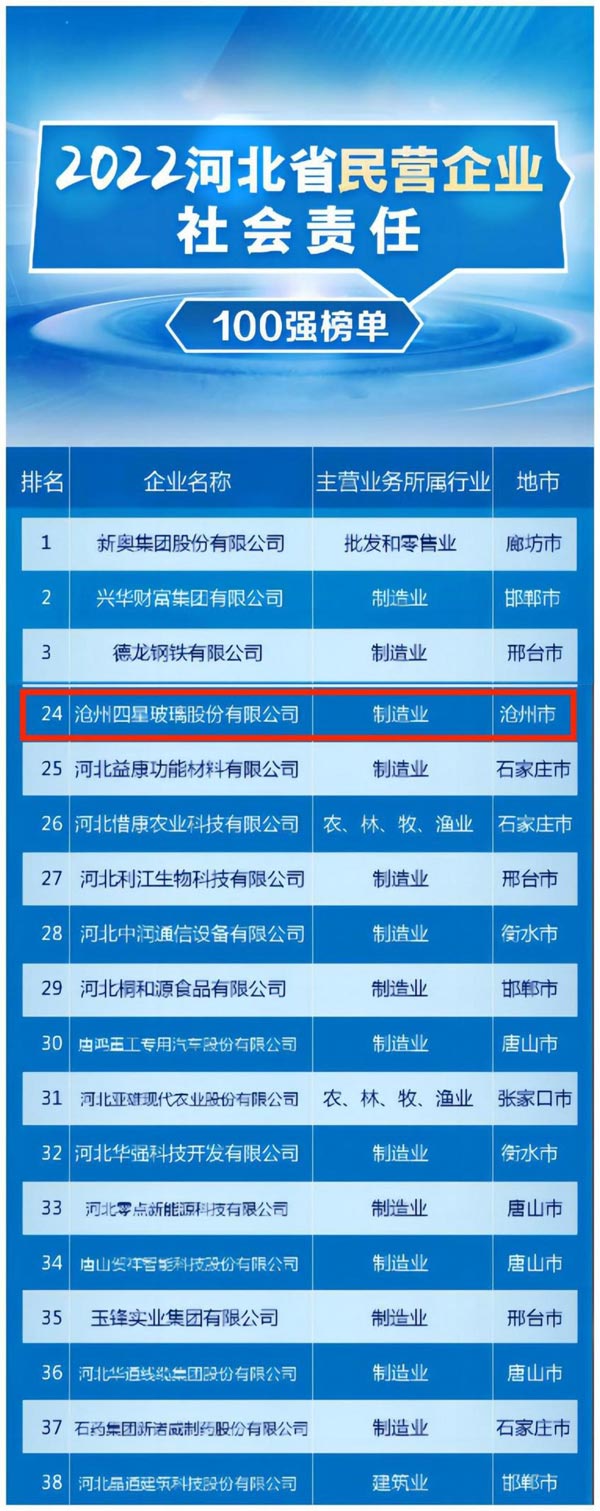 | 滄州四星玻璃入選2022年“河北省民營企業(yè)社會責任100強”榜單 |